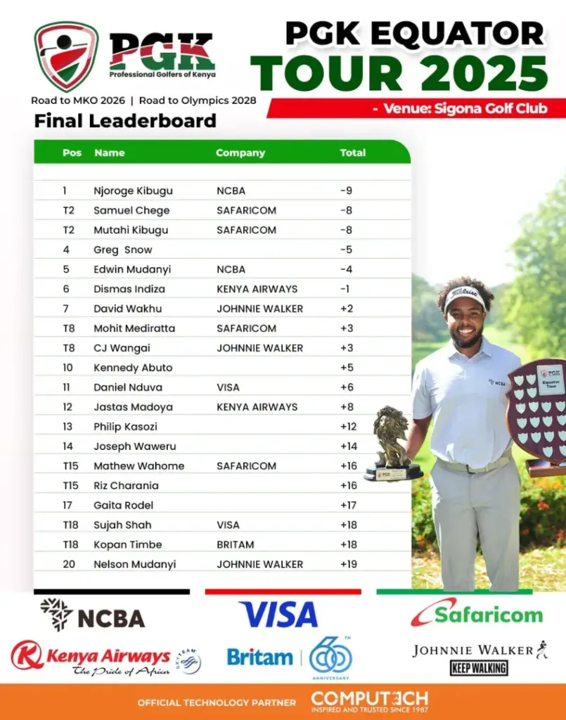 This event—and the success of the entire Equator Tour—would not be possible without the unwavering support of our esteemed sponsors and partners: NCBA, Safaricom, Britam, Visa, Johnnie Walker, Kenya Airways, and our official technology partner Computech. PGK extends heartfelt gratitude for their continued belief in the tour and the development of professional golf in Kenya.