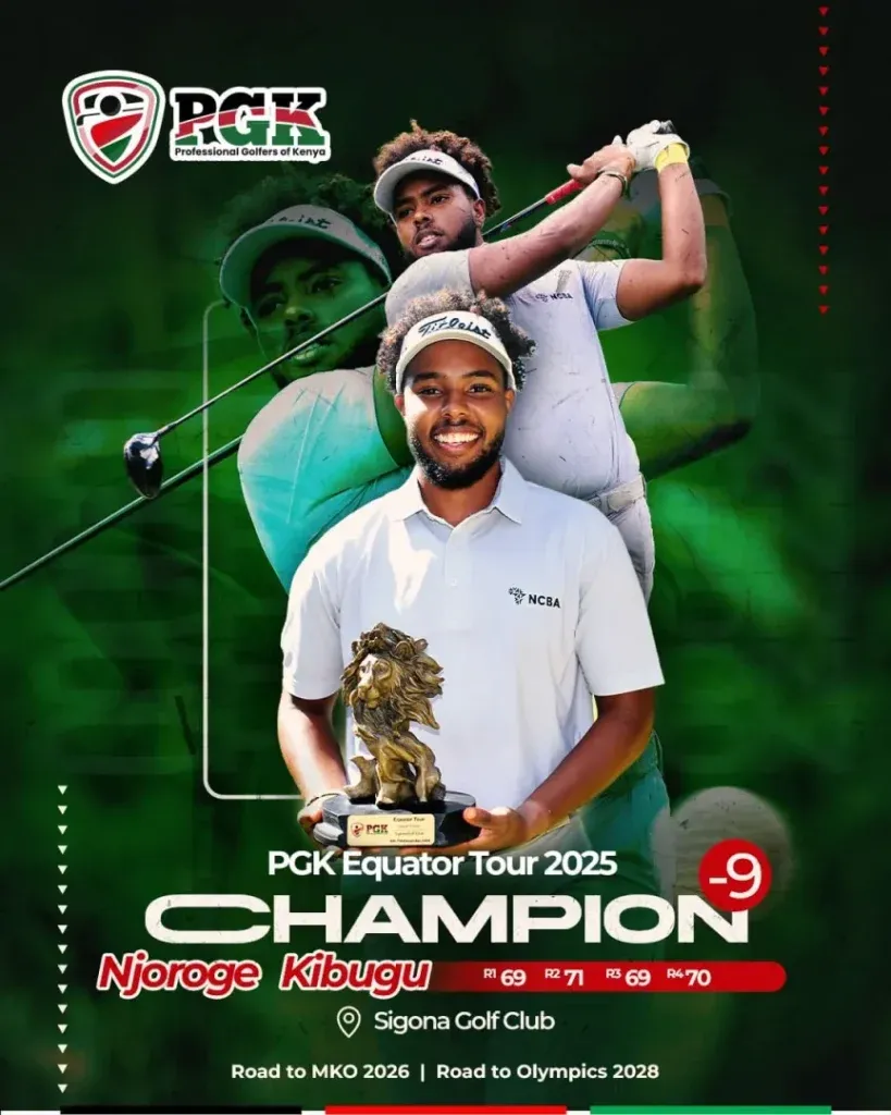 The Professional Golfers of Kenya (PGK) proudly concludes the Sigona leg of the PGK Equator Tour, where Njoroge Kibugu lifted his maiden Equator Tour trophy, finishing with an outstanding -9 overall. His steady performance across all four rounds—69, 71, 69, and 70—showcased remarkable consistency, resilience, and mental strength, marking a defining moment in his professional career.
